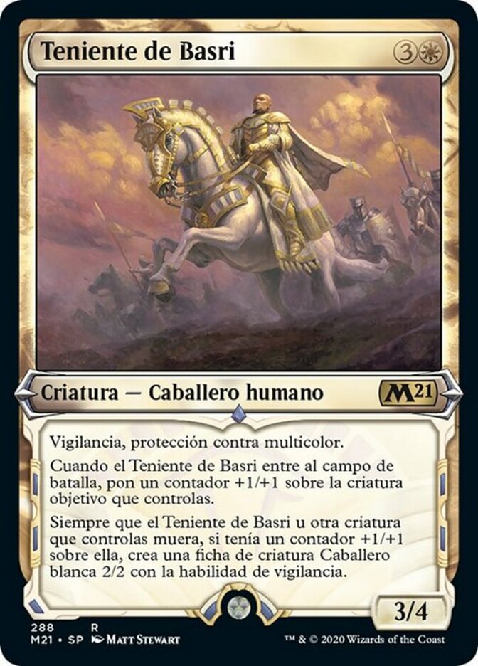 | Rules | Vigilance, protection from multicolored When Basri's Lieutenant enters the battlefield, put a +1/+1 counter on target creature you control. Whenever Basri's Lieutenant or another creature you control dies, if it had a +1/+1 counter on it, create a 2/2 white Knight creature token with vigilance. |