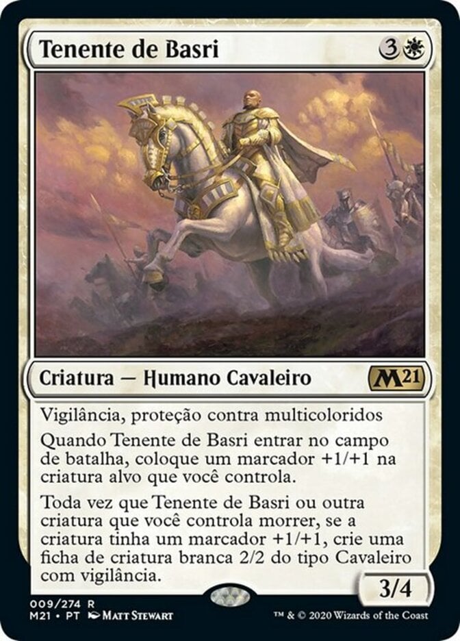 | Rules | Vigilance, protection from multicolored When Basri's Lieutenant enters the battlefield, put a +1/+1 counter on target creature you control. Whenever Basri's Lieutenant or another creature you control dies, if it had a +1/+1 counter on it, create a 2/2 white Knight creature token with vigilance. |