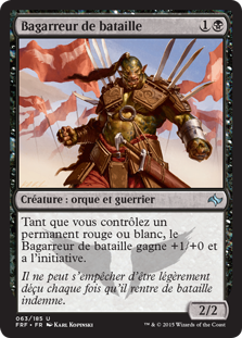 | Rules | As long as you control a red or white permanent, Battle Brawler gets +1/+0 and has first strike. |