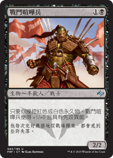 | Rules | As long as you control a red or white permanent, Battle Brawler gets +1/+0 and has first strike. |