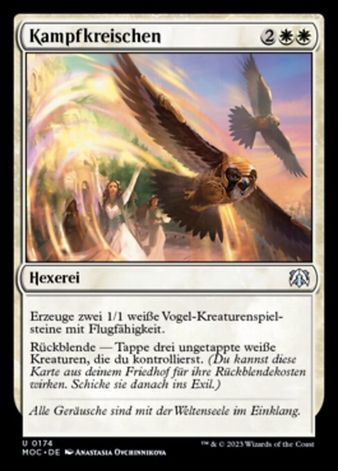 | Rules | Create two 1/1 white Bird creature tokens with flying. Flashback—Tap three untapped white creatures you control. (You may cast this card from your graveyard for its flashback cost. Then exile it.) |