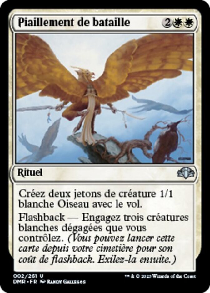 | Rules | Create two 1/1 white Bird creature tokens with flying. Flashback—Tap three untapped white creatures you control. (You may cast this card from your graveyard for its flashback cost. Then exile it.) |