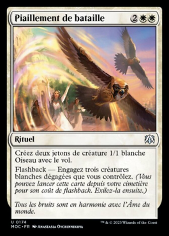 | Rules | Create two 1/1 white Bird creature tokens with flying. Flashback—Tap three untapped white creatures you control. (You may cast this card from your graveyard for its flashback cost. Then exile it.) |