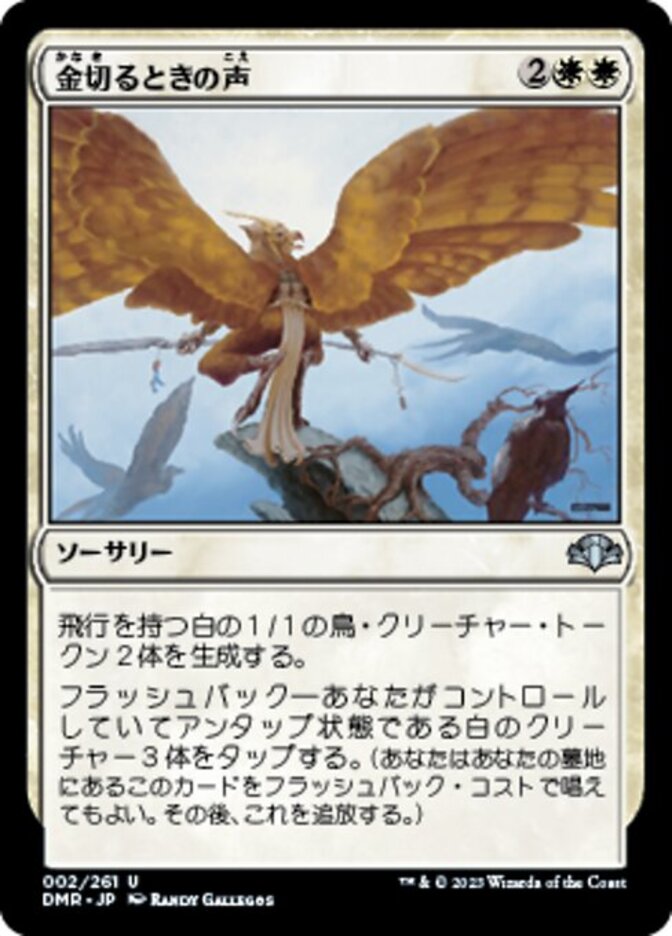 | Rules | Create two 1/1 white Bird creature tokens with flying. Flashback—Tap three untapped white creatures you control. (You may cast this card from your graveyard for its flashback cost. Then exile it.) |