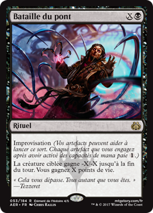 | Rules | Improvise (Your artifacts can help cast this spell. Each artifact you tap after you're done activating mana abilities pays for .) Target creature gets -X/-X until end of turn. You gain X life. |