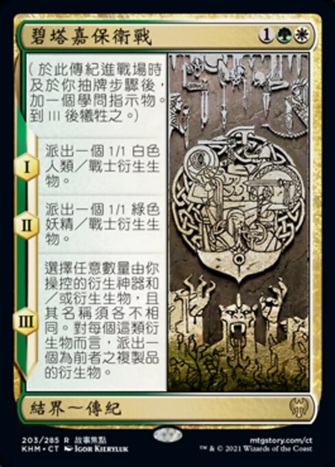 | Rules | (As this Saga enters and after your draw step, add a lore counter. Sacrifice after III.) I — Create a 1/1 white Human Warrior creature token. II — Create a 1/1 green Elf Warrior creature token. III — Choose any number of artifact tokens and/or creature tokens you control with different names. For each of them, create a token that's a copy of it. |