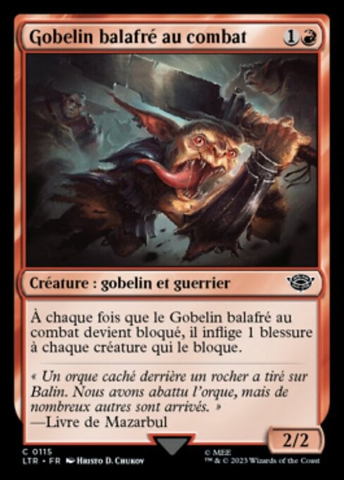 | Rules | Whenever Battle-Scarred Goblin becomes blocked, it deals 1 damage to each creature blocking it. |