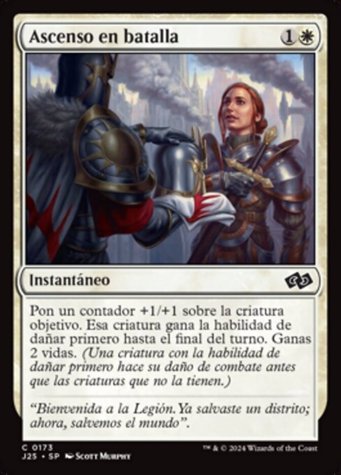 | Rules | Put a +1/+1 counter on target creature. That creature gains first strike until end of turn. You gain 2 life. |