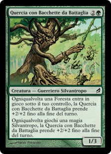 | Rules | Whenever a Forest enters the battlefield under your control, Battlewand Oak gets +2/+2 until end of turn. Whenever you cast a Treefolk spell, Battlewand Oak gets +2/+2 until end of turn. |