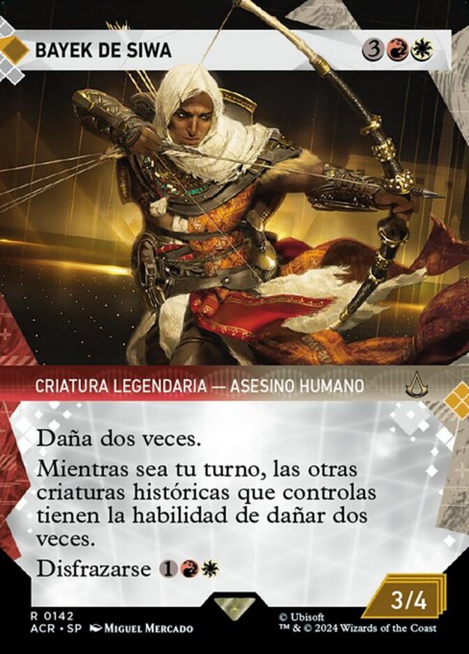 | Rules | Double strike As long as it's your turn, other historic creatures you control have double strike. Disguise (You may cast this card face down for as a 2/2 creature with ward . Turn it face up any time for its disguise cost.) |