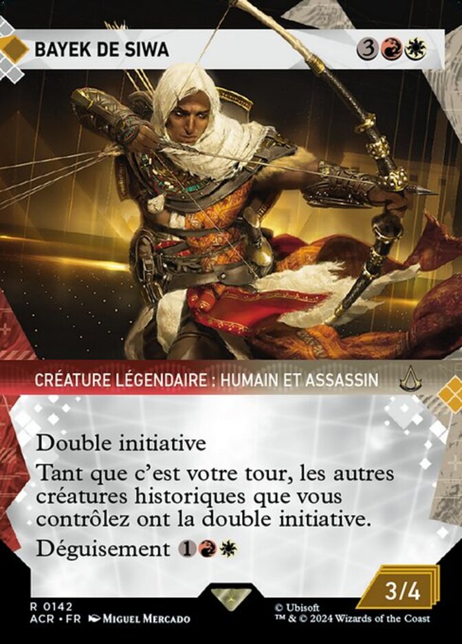 | Rules | Double strike As long as it's your turn, other historic creatures you control have double strike. Disguise (You may cast this card face down for as a 2/2 creature with ward . Turn it face up any time for its disguise cost.) |