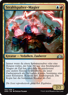 | Rules | Whenever you cast an instant or sorcery spell that targets only Beamsplitter Mage, if you control one or more other creatures that spell could target, choose one of those creatures. Copy that spell. The copy targets the chosen creature. |