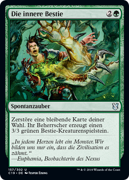 | Rules | Destroy target permanent. Its controller creates a 3/3 green Beast creature token. |