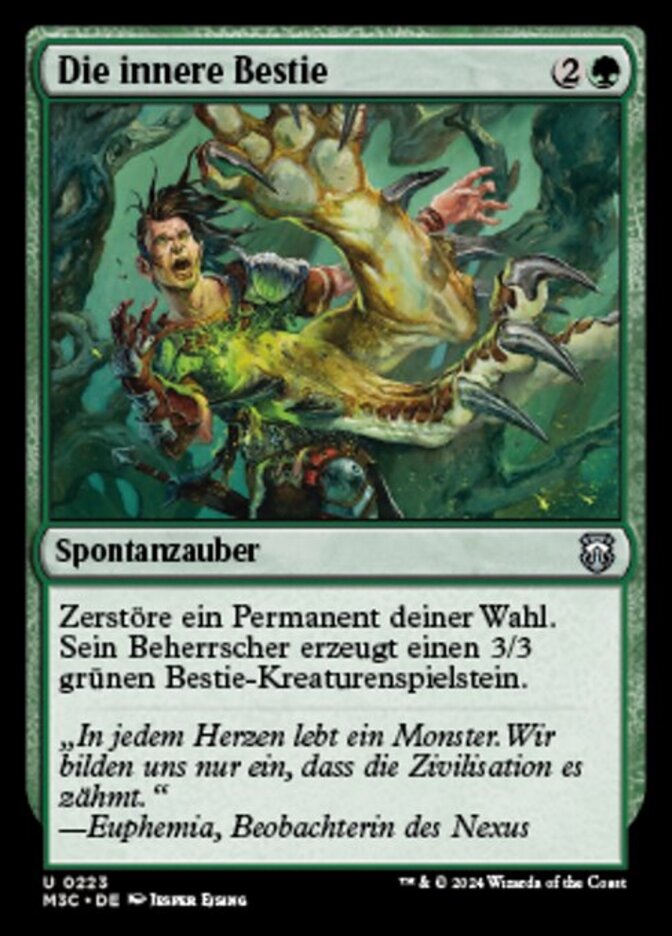 | Rules | Destroy target permanent. Its controller creates a 3/3 green Beast creature token. |