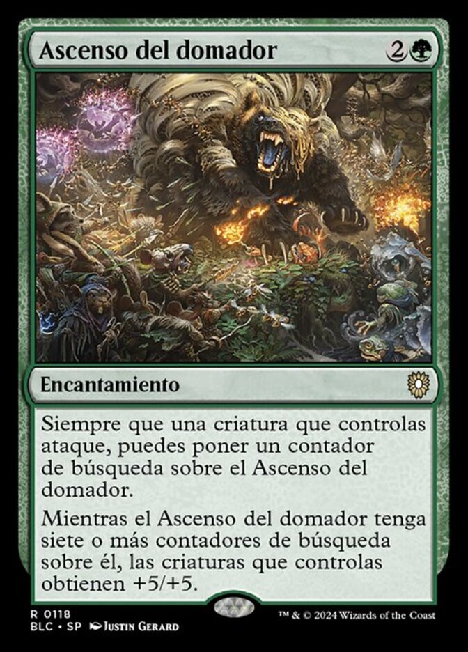 | Rules | Whenever a creature you control attacks, you may put a quest counter on Beastmaster Ascension. As long as Beastmaster Ascension has seven or more quest counters on it, creatures you control get +5/+5. |