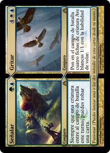 | Rules | Whenever a creature enters the battlefield this turn, you may draw a card. Fuse (You may cast one or both halves of this card from your hand.) // Create four 1/1 white Bird creature tokens with flying. Fuse (You may cast one or both halves of this card from your hand.) |