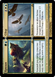 | Rules | Whenever a creature enters the battlefield this turn, you may draw a card. Fuse (You may cast one or both halves of this card from your hand.) // Create four 1/1 white Bird creature tokens with flying. Fuse (You may cast one or both halves of this card from your hand.) |