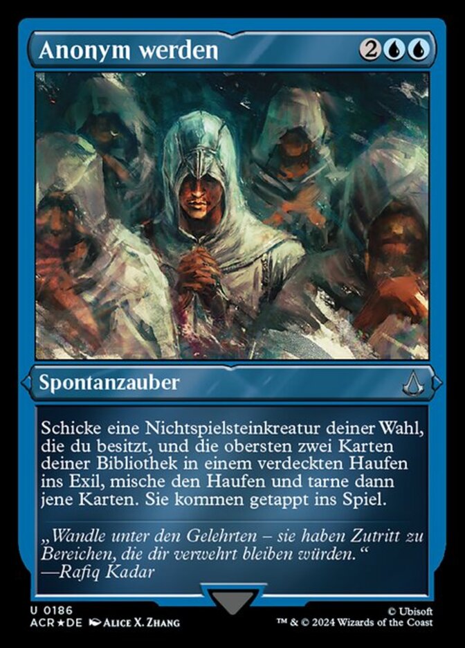 | Rules | Exile target nontoken creature you own and the top two cards of your library in a face-down pile, shuffle that pile, then cloak those cards. They enter the battlefield tapped. (To cloak a card, put it onto the battlefield face down as a 2/2 creature with ward . Turn it face up any time for its mana cost if it's a creature card.) |