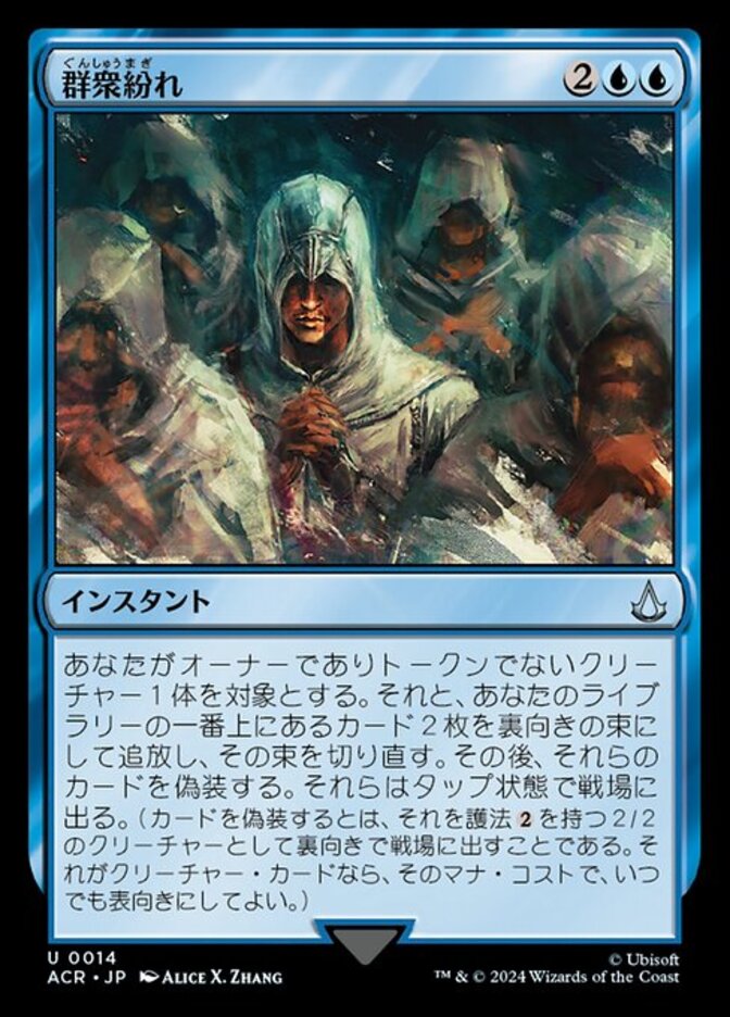 | Rules | Exile target nontoken creature you own and the top two cards of your library in a face-down pile, shuffle that pile, then cloak those cards. They enter the battlefield tapped. (To cloak a card, put it onto the battlefield face down as a 2/2 creature with ward . Turn it face up any time for its mana cost if it's a creature card.) |
