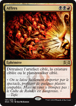 | Flavor | "It's easy to get taken in by the spectacle, to enjoy a bit of naughty amusement. But make no mistake: the Cult of Rakdos is a danger."-Tajic |