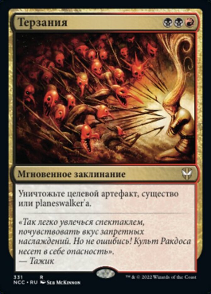 | Flavor | "It's easy to get taken in by the spectacle, to enjoy a bit of naughty amusement. But make no mistake: the Cult of Rakdos is a danger."-Tajic |