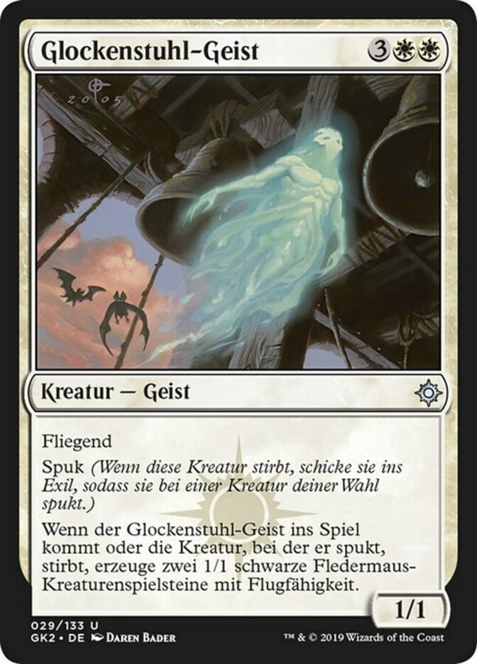 | Rules | Flying Haunt (When this creature dies, exile it haunting target creature.) When Belfry Spirit enters the battlefield or the creature it haunts dies, create two 1/1 black Bat creature tokens with flying. |
