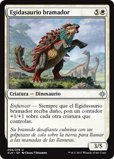 | Rules | Enrage — Whenever Bellowing Aegisaur is dealt damage, put a +1/+1 counter on each other creature you control. |