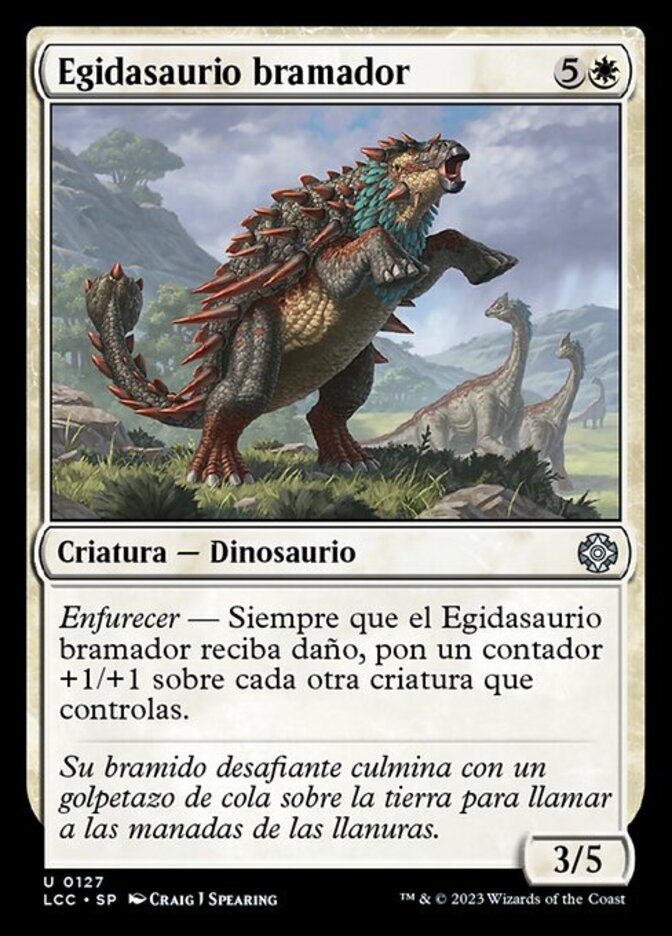 | Rules | Enrage — Whenever Bellowing Aegisaur is dealt damage, put a +1/+1 counter on each other creature you control. |