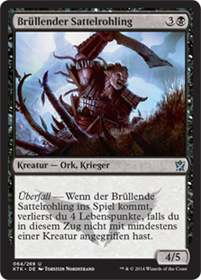 | Rules | Raid — When Bellowing Saddlebrute enters the battlefield, you lose 4 life unless you attacked this turn. |
