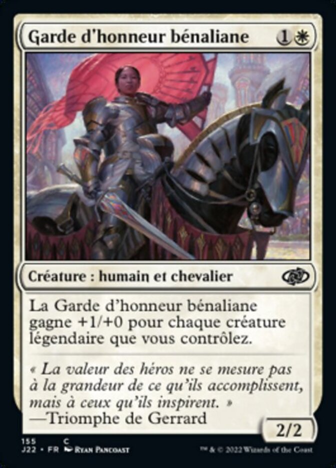 | Rules | Benalish Honor Guard gets +1/+0 for each legendary creature you control. |