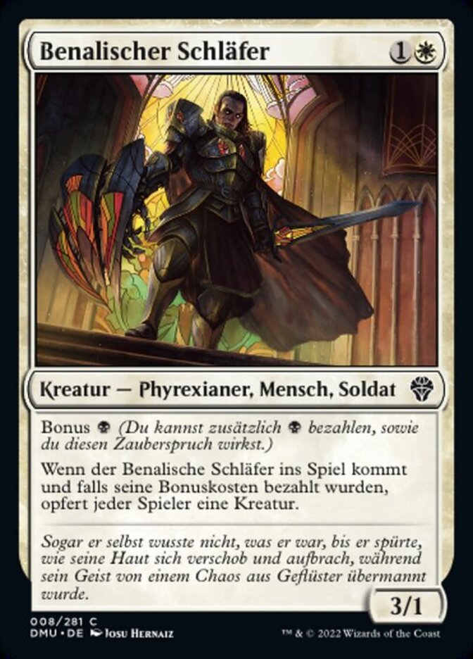 | Rules | Kicker (You may pay an additional as you cast this spell.) When Benalish Sleeper enters the battlefield, if it was kicked, each player sacrifices a creature. |
