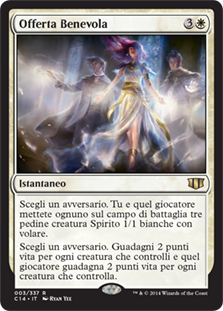 | Rules | Choose an opponent. You and that player each create three 1/1 white Spirit creature tokens with flying. Choose an opponent. You gain 2 life for each creature you control and that player gains 2 life for each creature they control. |