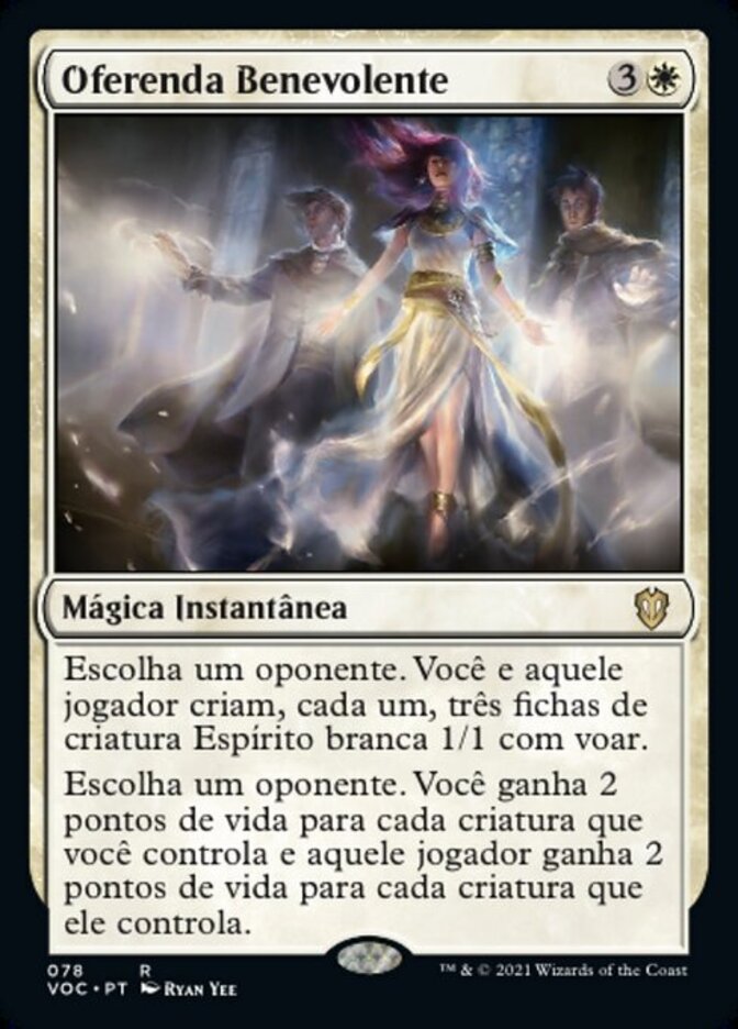 | Rules | Choose an opponent. You and that player each create three 1/1 white Spirit creature tokens with flying. Choose an opponent. You gain 2 life for each creature you control and that player gains 2 life for each creature they control. |