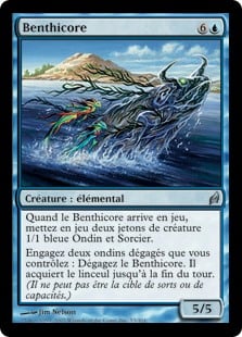 | Rules | When Benthicore enters the battlefield, create two 1/1 blue Merfolk Wizard creature tokens. Tap two untapped Merfolk you control: Untap Benthicore. It gains shroud until end of turn. (It can't be the target of spells or abilities.) |