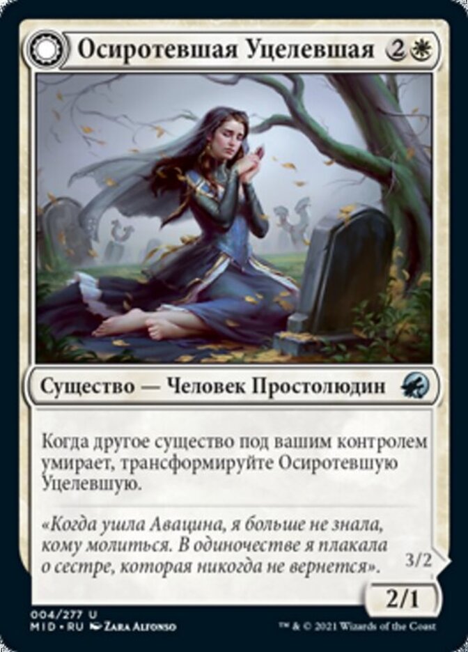 | Rules | When another creature you control dies, transform Bereaved Survivor. // Whenever Dauntless Avenger attacks, return target creature card with mana value 2 or less from your graveyard to the battlefield tapped and attacking. |