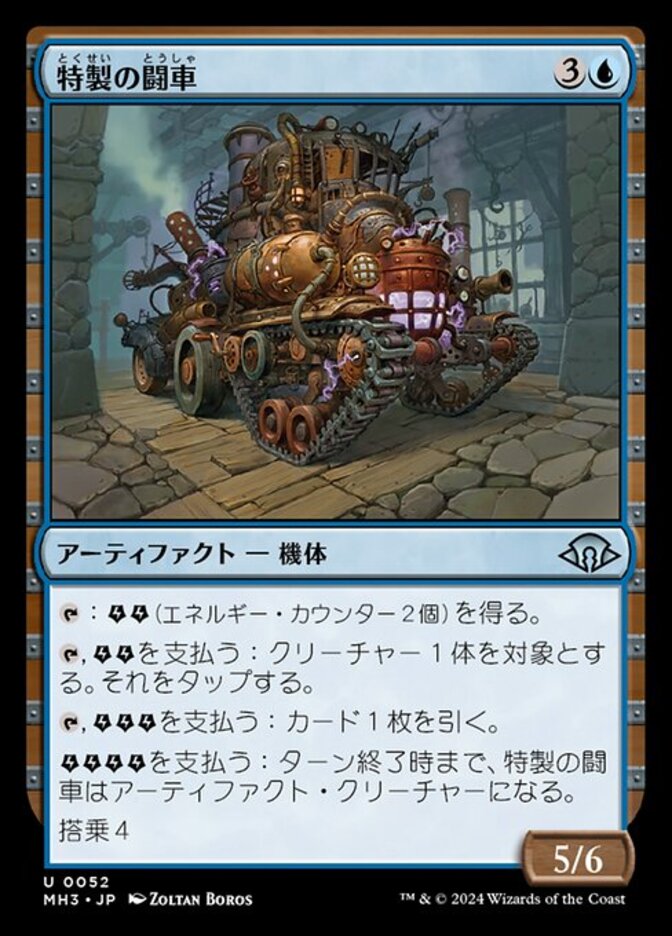 | Rules | : You get (two energy counters). , Pay : Tap target creature. , Pay : Draw a card. Pay : Bespoke Battlewagon becomes an artifact creature until end of turn. Crew 4 |