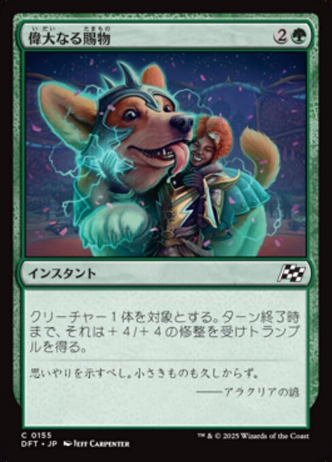 | Rules | Target creature gets +4/+4 and gains trample until end of turn. |