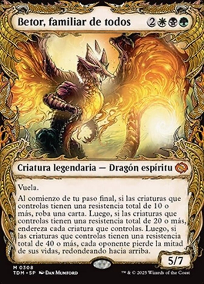 | Rules | Flying At the beginning of your end step, if creatures you control have total toughness 10 or greater, draw a card. Then if creatures you control have total toughness 20 or greater, untap each creature you control. Then if creatures you control have total toughness 40 or greater, each opponent loses half their life, rounded up. |