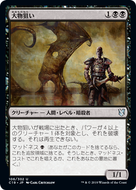 | Rules | When Big Game Hunter enters the battlefield, destroy target creature with power 4 or greater. It can't be regenerated. Madness (If you discard this card, discard it into exile. When you do, cast it for its madness cost or put it into your graveyard.) |
