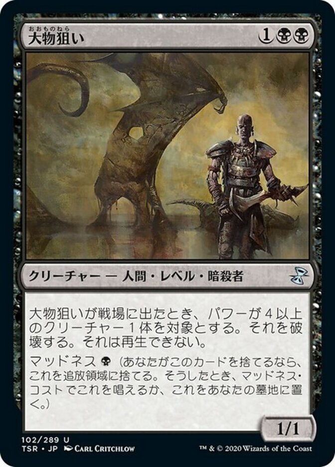 | Rules | When Big Game Hunter enters the battlefield, destroy target creature with power 4 or greater. It can't be regenerated. Madness (If you discard this card, discard it into exile. When you do, cast it for its madness cost or put it into your graveyard.) |