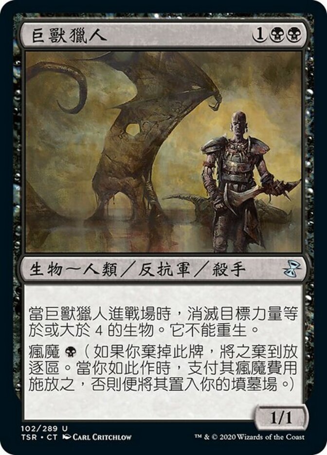 | Rules | When Big Game Hunter enters the battlefield, destroy target creature with power 4 or greater. It can't be regenerated. Madness (If you discard this card, discard it into exile. When you do, cast it for its madness cost or put it into your graveyard.) |
