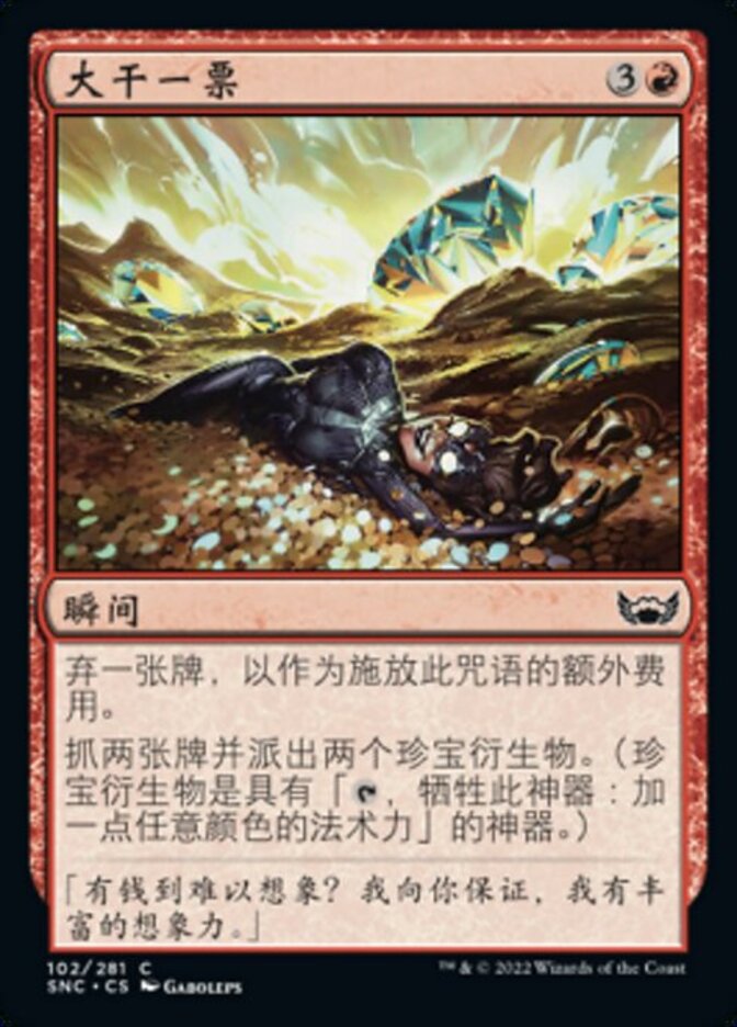 | Rules | As an additional cost to cast this spell, discard a card. Draw two cards and create two Treasure tokens. (They're artifacts with ", Sacrifice this artifact: Add one mana of any color.") |