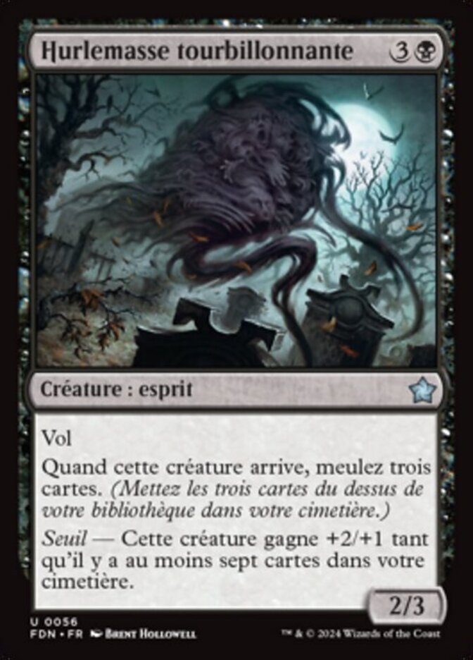 | Rules | Flying When this creature enters, mill three cards. (Put the top three cards of your library into your graveyard.) Threshold — This creature gets +2/+1 as long as there are seven or more cards in your graveyard. |