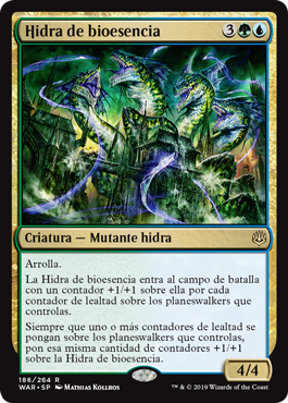 | Rules | Trample Bioessence Hydra enters the battlefield with a +1/+1 counter on it for each loyalty counter on planeswalkers you control. Whenever one or more loyalty counters are put on planeswalkers you control, put that many +1/+1 counters on Bioessence Hydra. |