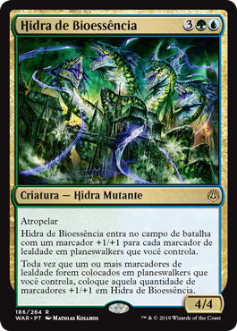 | Rules | Trample Bioessence Hydra enters the battlefield with a +1/+1 counter on it for each loyalty counter on planeswalkers you control. Whenever one or more loyalty counters are put on planeswalkers you control, put that many +1/+1 counters on Bioessence Hydra. |