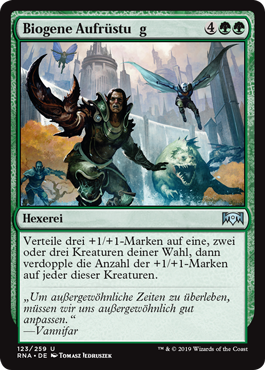 | Rules | Distribute three +1/+1 counters among one, two, or three target creatures, then double the number of +1/+1 counters on each of those creatures. |