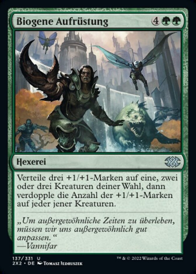 | Rules | Distribute three +1/+1 counters among one, two, or three target creatures, then double the number of +1/+1 counters on each of those creatures. |