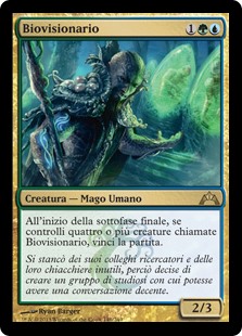 | Rules | At the beginning of the end step, if you control four or more creatures named Biovisionary, you win the game. |