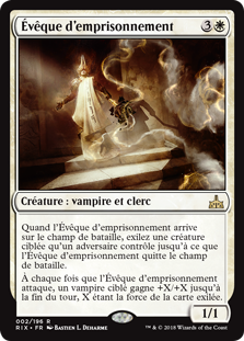 | Rules | When Bishop of Binding enters the battlefield, exile target creature an opponent controls until Bishop of Binding leaves the battlefield. Whenever Bishop of Binding attacks, target Vampire gets +X/+X until end of turn, where X is the power of the exiled card. |
