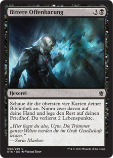 | Rules | Look at the top four cards of your library. Put two of them into your hand and the rest into your graveyard. You lose 2 life. |